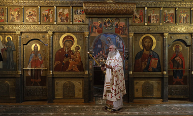 Богослужебные песнопения были исполнены монастырским хором и мужским хором храма Живоначальной Троицы в Останкине.