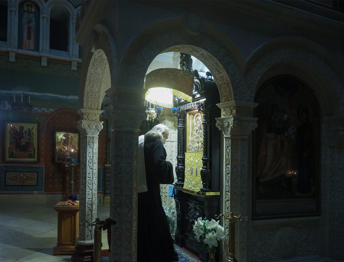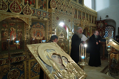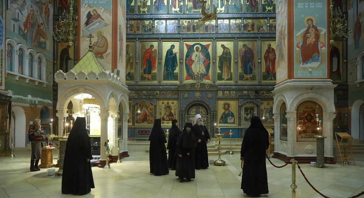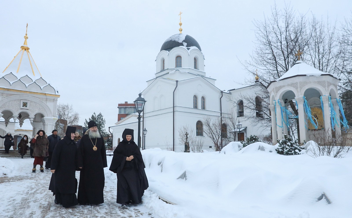 За богослужением молились заместитель председателя Синодального отдела по монастырям и монашеству, настоятельница Зачатьевского ставропигиального женского монастыря игумения Иулиания (Каледа) с сестрами, настоятельница Богородице-Рождественского ставропигиального женского монастыря игумения Викторина (Перминова).