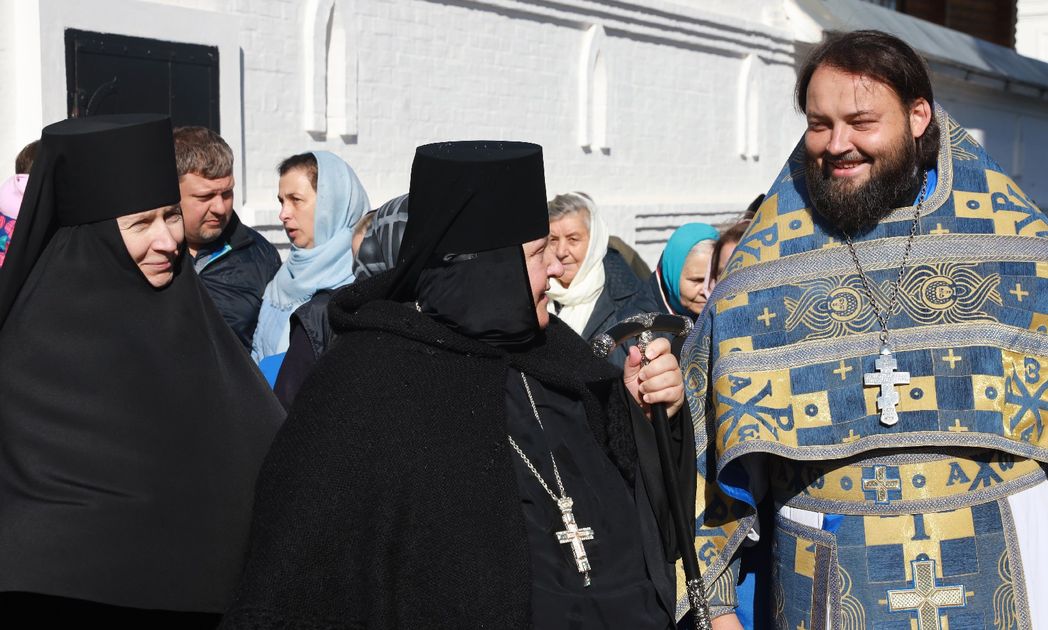 Его Высокопреосвященству сослужили игумен Свято-Троицкого Павло-Обнорского монастыря Вологодской митрополии Игнатий (Молчанов); иеромонах Всеволод (Сиканов) – наместник Иоанно-Богословского Савво-Крыпецкого монастыря Псковской митрополии; игумен Филарет (Тамбовский) – клирик московского храма во имя иконы «Всех скорбящих Радость» на Б. Ордынке; благочинный Александровского церковного округа протоиерей Олег Михайлов, а также насельники Свято-Троицкой Сергиевой лавры игумен Николай (Павлык) и иеродиакон Михей (Соррэ), клирики Стефано-Махрищского монастыря, гости монастыря в священном сане.