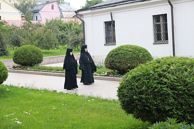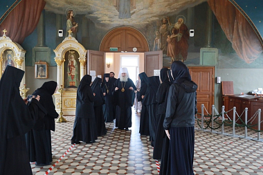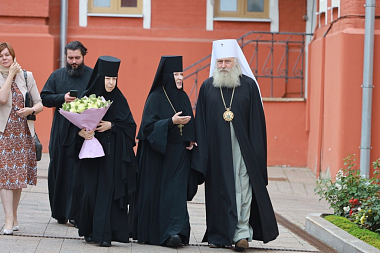 За богослужением молились настоятельница монастыря игумения Викторина (Перминова) с сестрами, зав. канцелярией Синодального отдела по монастырям и монашеству