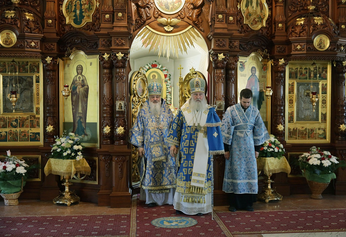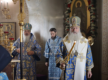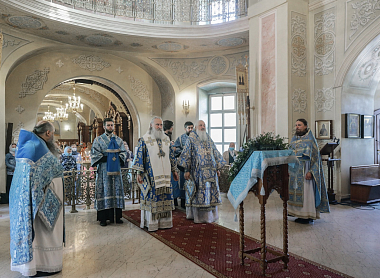 Его Высокопреосвященству сослужили наместник Екатерининского монастыря епископ Видновский Тихон и братия обители в священном сане.