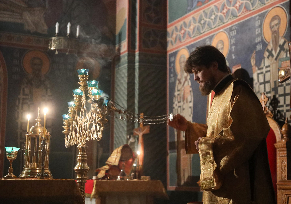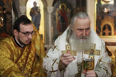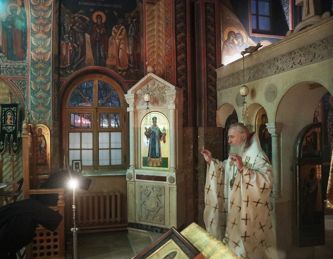 Его Высокопреосвященсту сослужили клирики Зачатьевской обители.