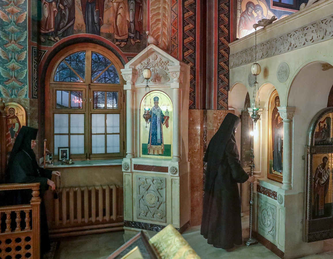 Богослужебные песнопения исполнил хор сестер монастыря.