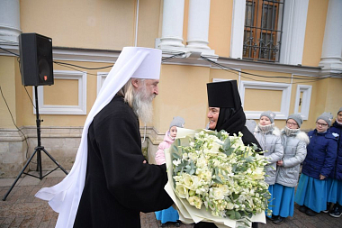 Его Высокопреосвященству сослужили протопресвитер Владимир Диваков, секретарь Патриарха Московского и всея Руси по г. Москве, духовенство обители.