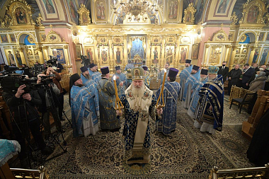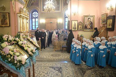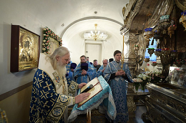 По прибытии в монастырь архиерей поклонился честным мощам блаженной Матроны Московской, после чего возглавил позднюю Божественную литургию в Воскресенском соборе обители.