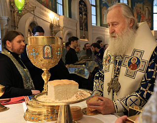 По окончании богослужения митрополит Феогност обратился к молящимся со словом проповеди.