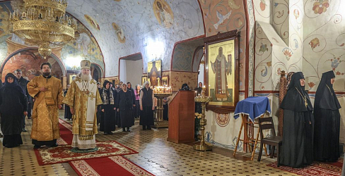 По окончании Божественной литургии была совершена лития по архимандриту Петру (Афанасьеву), духовнику обители, погребенному в правом приделе храма.