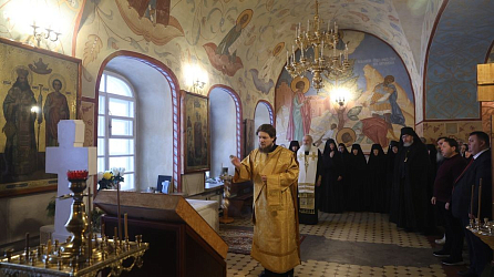 За богослужением с матушкой Антонией и сестрами молились настоятельница Никольского Шостьенского ставропигиального женского монастыря игумения Неонилла (Фролова), воспитанницы и учителя Александровской женской гимназии.