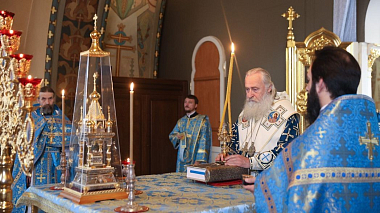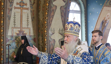 В завершение богослужения, по традиции престольного праздника, состоялся крестный ход, после которого митрополит Феогност обратился к молящимся с архипастырским словом: