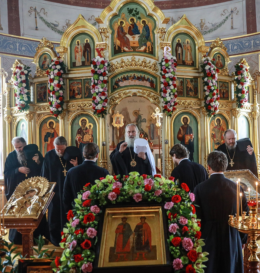 Накануне вечером собором монастырского духовенства в пределе святых благоверных князей и страстотерпцев Бориса и Глеба в обители было отслужено торжественное всенощное бдение с литией и пением акафиста.