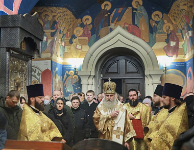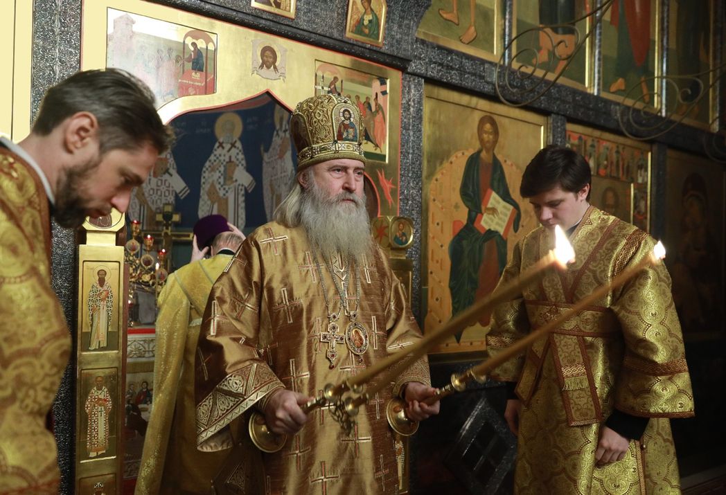 Его Высокопреосвященству сослужили духовенство Угрешской обители и преподаватели Николо-Угрешской семинарии в священном сане.