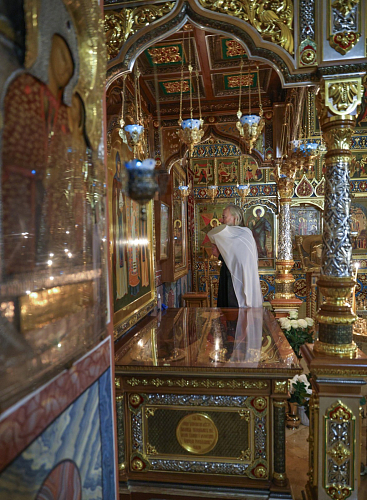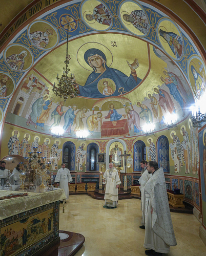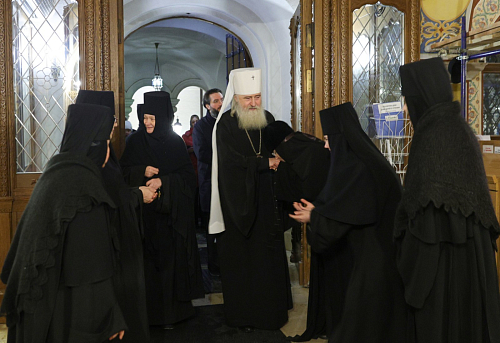 Высокопреосвященному владыке сослужили монастырские клирики. Богослужебные песнопения исполнил хор Зачатьевской обители. По окончании богослужения владыка провел рабочее совещание.