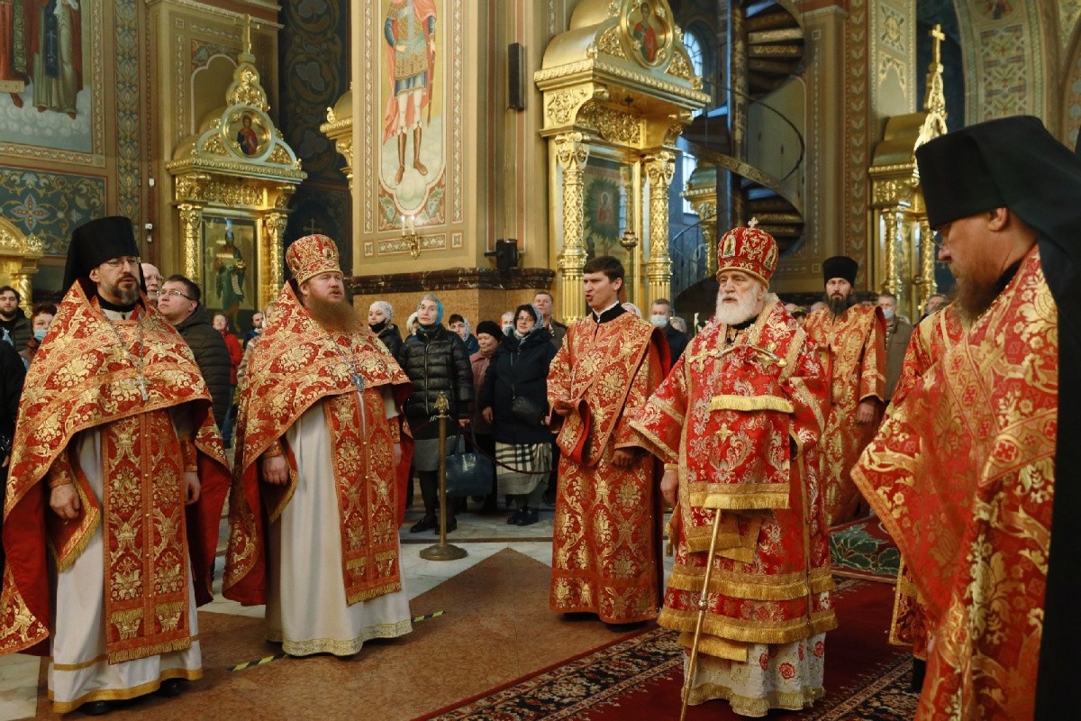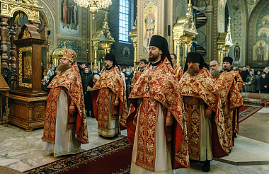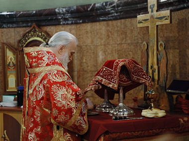 Его Высокопреосвященству сослужили наместник обители архимандрит Варфоломей (Петров) с братией монастыря в священном сане.