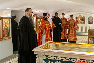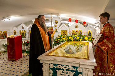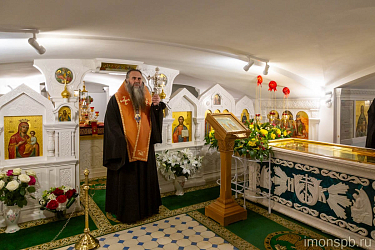 Затем духовенство и паломники спустились в храм-усыпальницу, где был отслужен молебен св. прав. Иоанну Кронштадтскому.