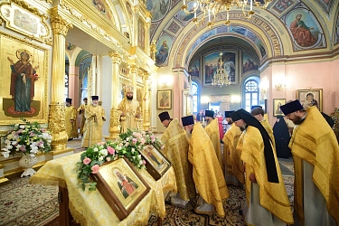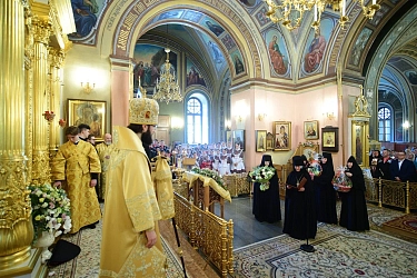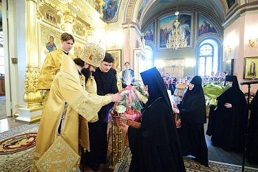 Его Высокопреосвященству сослужили духовенство г. Москвы и Покровской обители.