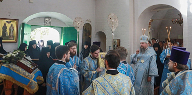 Его Высокопреосвященству сослужили клирики монастыря. За Литургией молились настоятельница обители игумения Иулиания (Каледа) с сестрами и игумения Елисавета (Позднякова), настоятельница ставропигиального женского монастыря Марфо-Мариинская обитель милосердия.