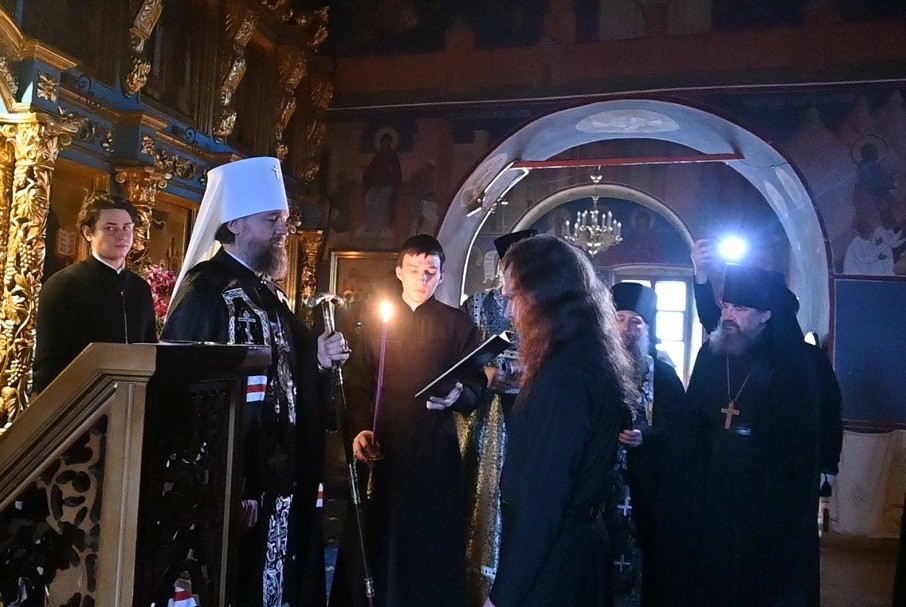 8 апреля 2024 года, в понедельник седмицы 4-й Великого поста, Крестопоклонной, перед началом вечернего богослужения первый викарий Святейшего Патриарха по г. Москве, управляющий Центральным викариатством и наместник Новоспасского ставропигиального мужского монастыря митрополит Воскресенский Григорий совершил иноческий постриг.
