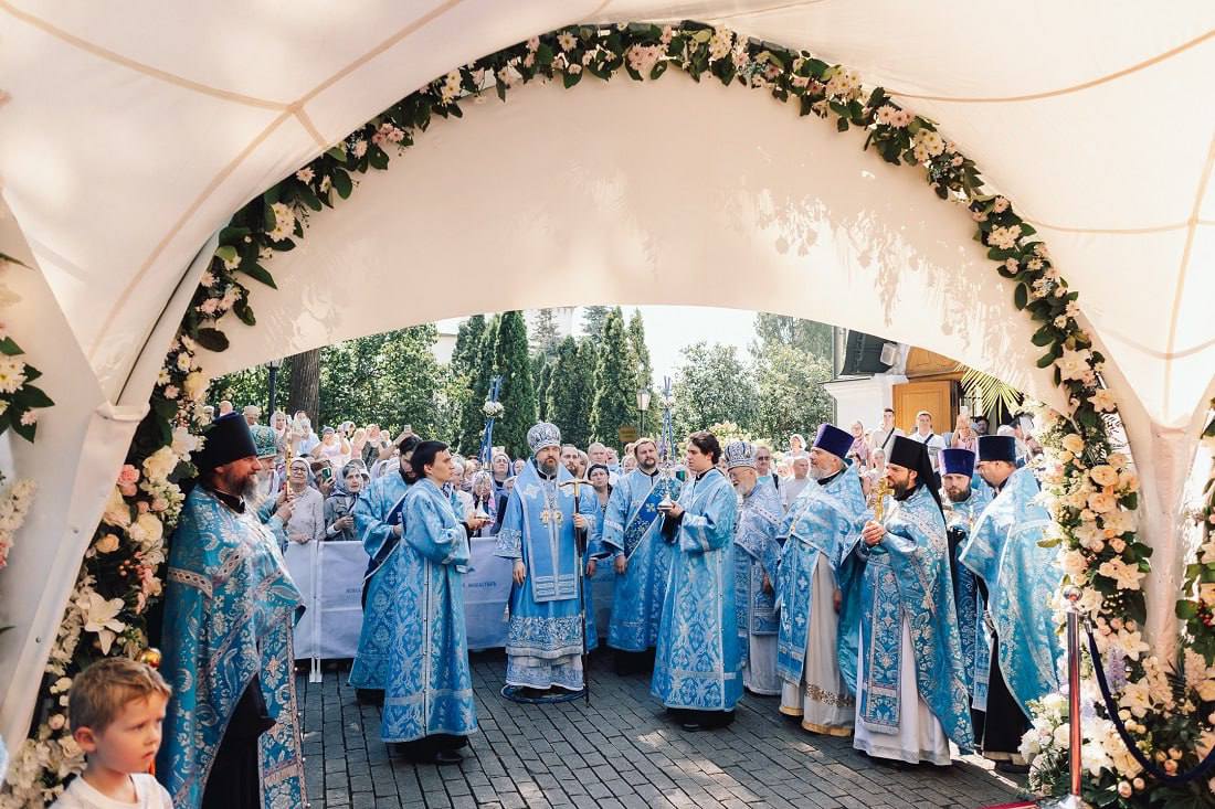 По окончании Литургии состоялся крестный ход по обители с чудотворной иконой Божией Матери «Всецарица» – святыней Новоспасского монастыря, принесенной сюда в 1997-м году со Святой горы Афон. Затем святой образ был поставлен в специальном украшенном шатре на площади у Спасо-Преображенского собора для поклонения верующих.