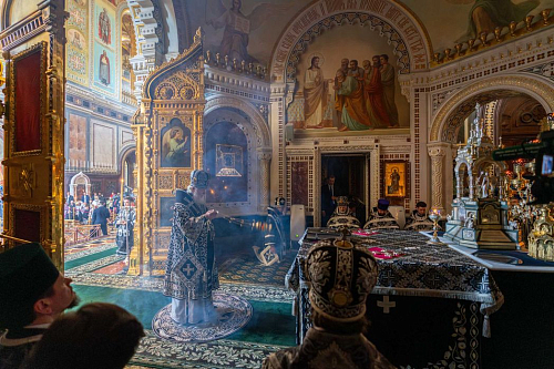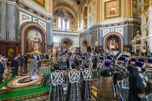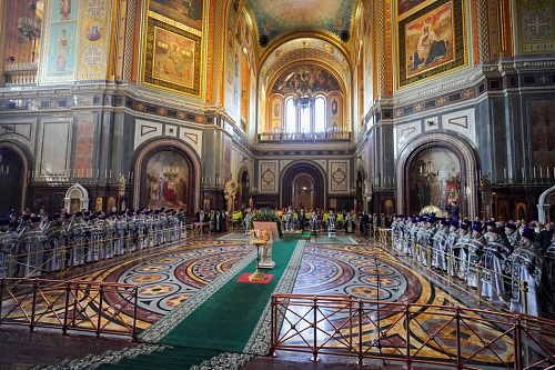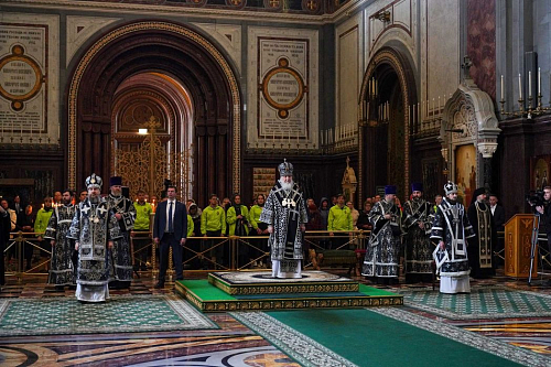 На сугубой ектении были вознесены особые прошения, Предстоятель Русской Православной Церкви прочитал молитву о Святой Руси.