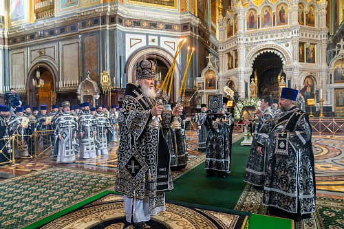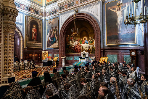 16 апреля 2025 года, в среду Страстной седмицы, Святейший Патриарх Московский и всея Руси Кирилл молился за уставными великопостными богослужениями в кафедральном соборном Храме Христа Спасителя в Москве. Затем Предстоятель Русской Православной Церкви совершил последнюю в этом году Литургию Преждеосвященных Даров.