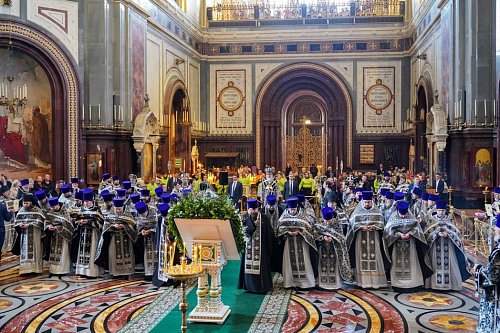 Его Высокопреосвященству сослужили: митрополит Воскресенский Григорий, управляющий делами Московской Патриархии, первый викарий Патриарха Московского и всея Руси по г. Москве; епископ Раменский Алексий, личный секретарь Святейшего Патриарха Кирилла; протопресвитер Владимир Диваков, секретарь Патриарха Московского и всея Руси по г. Москве; протоиерей Михаил Рязанцев, ключарь Храма Христа Спасителя; московское духовенство.