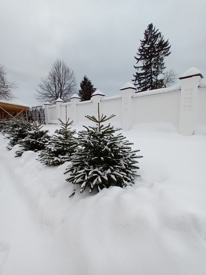 Более трех лет назад на подворье стали высаживать большемеры и крупномеры хвойных растений. В этом сложном деле помогает близлежащий питомник. Посадки проходят регулярно. Но этой зимой была первая. Она производилась с использованием специальной техники. В общей сложности на территории подворья посажено более 40 крупных деревьев.