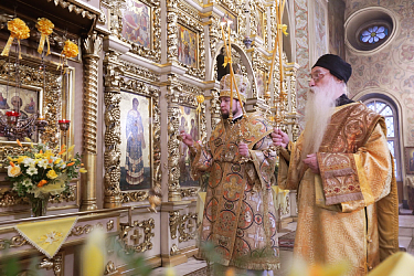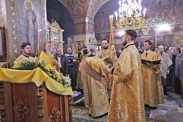 По окончании Литургии епископ Серафим передал благословение и поздравления Святейшего Патриарха Московского и всея Руси Кирилла духовенству, насельницам, прихожанам и гостям обители.