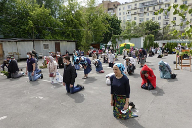 При подготовке богослужений были учтены все предписанные священноначалием санитарные меры. На землю была нанесена специальная разметка, установлены громкоговорители, часть двора, отведенная для проведения исповеди, была дополнительно огорожена. На видных местах были размещены плакаты с пояснениями относительно имеющихся санитарных требований.