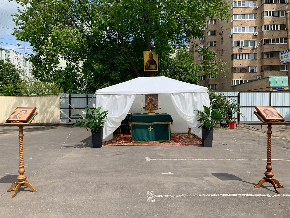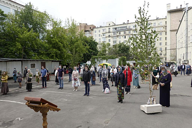 6–7 июня 2020 года, в Троицкую родительскую субботу и праздник Пятидесятницы, на Московском подворье Спасо-Преображенского Валаамского ставропигиального мужского монастыря состоялись праздничные богослужения. Чтобы все желающие после долгого перерыва смогли принять участие в соборной молитве, исповедаться и причаститься Святых Христовых Таин, службы было решено проводить во внутреннем дворе храма, где была устроен временный алтарь, размещены уличные подсвечники, на специально сооруженных аналоях установлены ростовые иконы. На подставках по всей территории по традиции были установлены березки, еще больше передававшие праздничное настроение. Всё это позволило в краткие сроки превратить прилегающую к подворью площадку в полноценный храм, по периметру которого были установлены громкоговорители, позволявшие всем присутствовавшим хорошо слышать и молитвословия духовенства, и песнопения хора, и проповедь.
