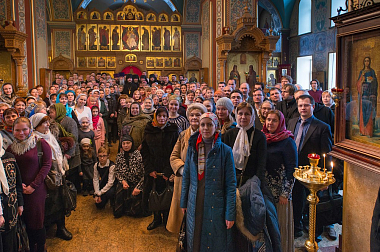 Дружный большой приход с трудом уместился на фотографии. В съемке приняли участие и приходские организации подворья: Миссионерское братство во имя преподобного Германа Аляскинского, Православный английский дискуссионный клуб, Иконописная и Воскресная школы, хоровой кружок и сотрудники храма.