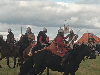 Кульминацией исторического праздника на Красном холме стала реконструкция эпизода средневекового сражения.