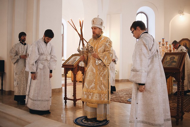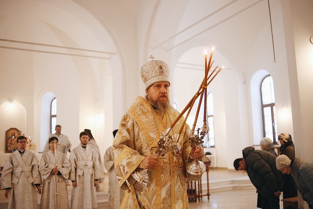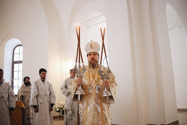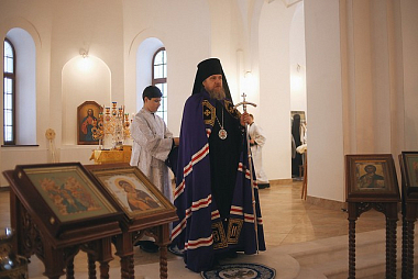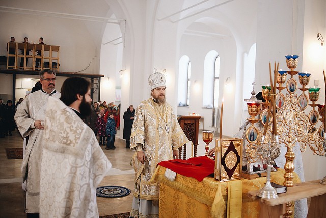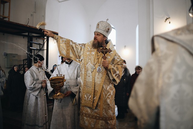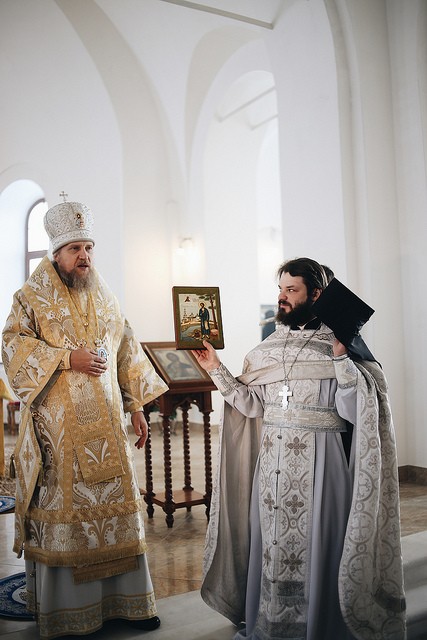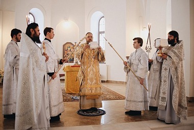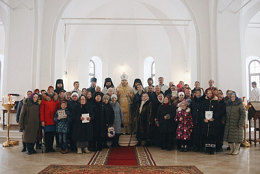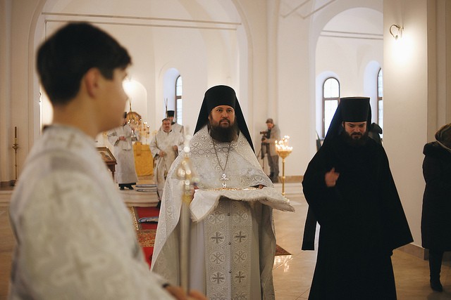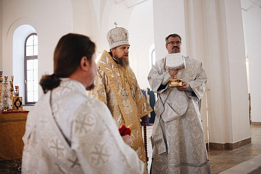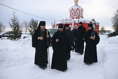 За Божественной литургией Его Преосвященству сослужили насельники Новоспасского монастыря и подворья обители в с. Сумарокове: иеромонахи настоятель подворья Сергий (Филиппов) и Амвросий (Рыженков), иеродиаконы Арсений (Гуляев) и Прокопий (Жамков).