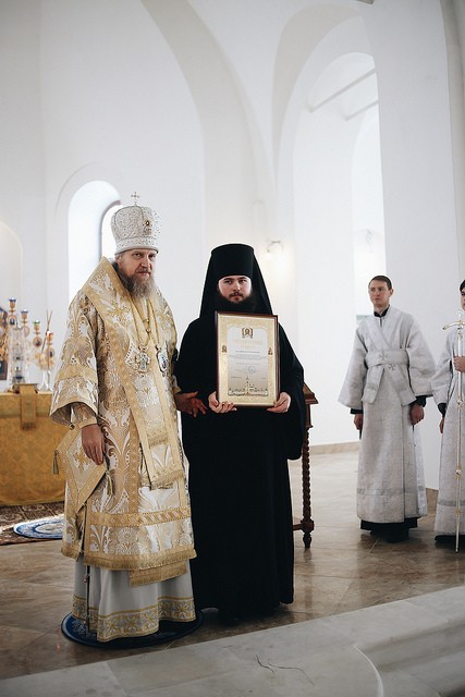 По завершении Божественной литургии ряд прихожан и ктиторов был отмечен благодарственными грамотами наместника Новоспасского ставропигиального мужского монастыря за усердные труды на благо подворья.