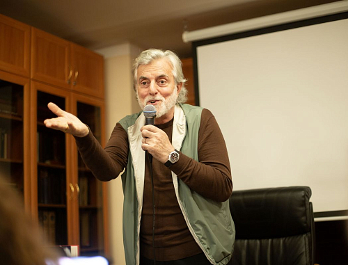 12 сентября 2025 года в лекционном зале Санкт-Петербургского подворья Спасо-Преображенского Валаамского ставропигиального мужского монастыря состоялась встреча с известным грузинским актером Давидом Георгобиани.