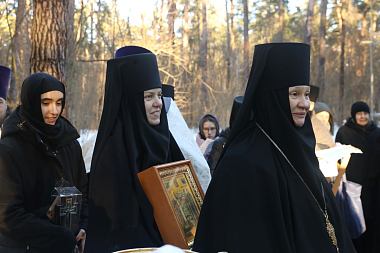 Игумения Иулиания поблагодарила владыку за совершение чина освящения крестов и за добрые слова. Матушка игумения отметила действие Промысла Божия в получении Первосвятительского благословения на освящение крестов 7 декабря, в день памяти преподобной Мастридии, чьё имя носила игумения Зачатьевского монастыря Мастридия (Ротенберг), в 1862-1867 г. хлопотавшая о выделении для нужд монастыря лесных угодий. В то время по благословению святителя Филарета в обители был вновь введен общежительный устав, игумения Мастридия заботилась о запасе дров для топления печей в трапезной. По ходатайству святителя Филарета лес был выделен – 80 десятин (87, 36 га). Нынешний участок-часть исторических лесных владений.