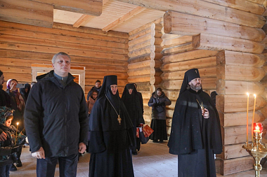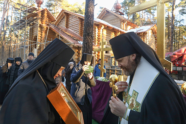 Архиепископ Фома поздравил матушку игумению с состоявшимся освящением и сказал напутственное слово для всех собравшихся, пожелал в наступившем году неоскудевающей помощи Божией в трудах на благо Церкви и Отечества, а также с благодарностью Богу нести каждому свой крест во спасение.