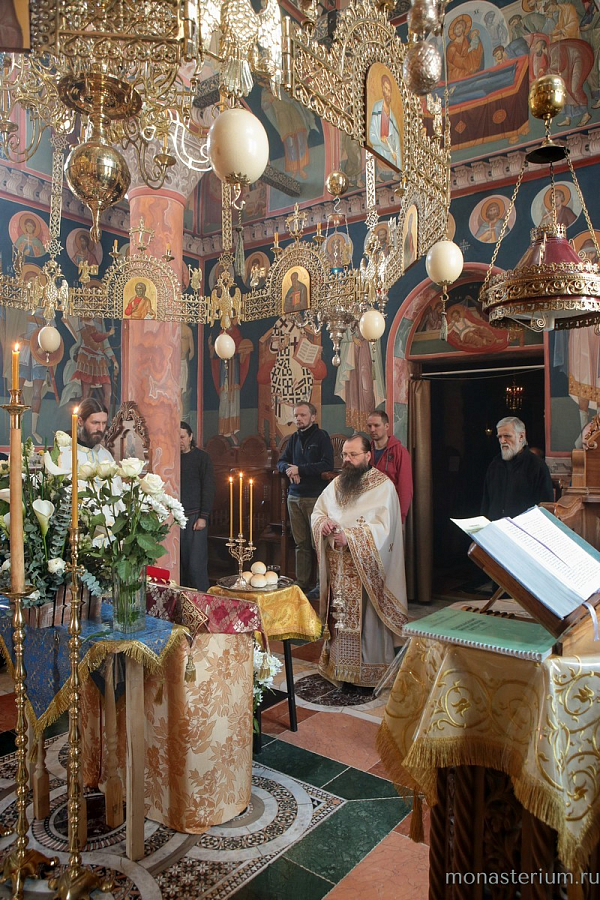 Накануне, 15 апреля, в Великую Субботу, настоятель подворья игумен Кронид (Карев) в сослужении насельника обители иеромонаха Пантелеимона (Королева) в монастырском храме Святителя Спиридона Тримифунтского отслужил уставное богослужение, начавшееся в 14.00 и включившее в себя 3, 6 и 9 часы, изобразительны, великую вечерню и Литургию свт. Василия Великого.