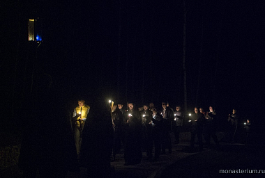 Ровно в полночь состоялся крестный ход с обнесением Святой Плащаницы вокруг храма.