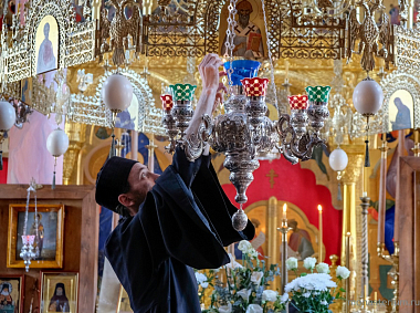 Церковные песнопения исполнила братия скита.