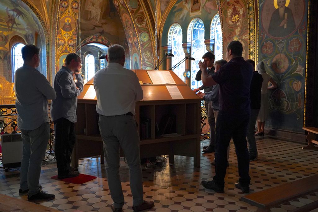 По окончании Литургии игумен Арсений с братией преподнес епископу Леониду богослужебные церковные сосуды.