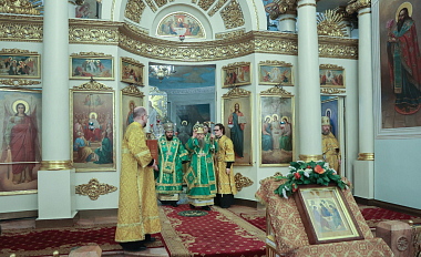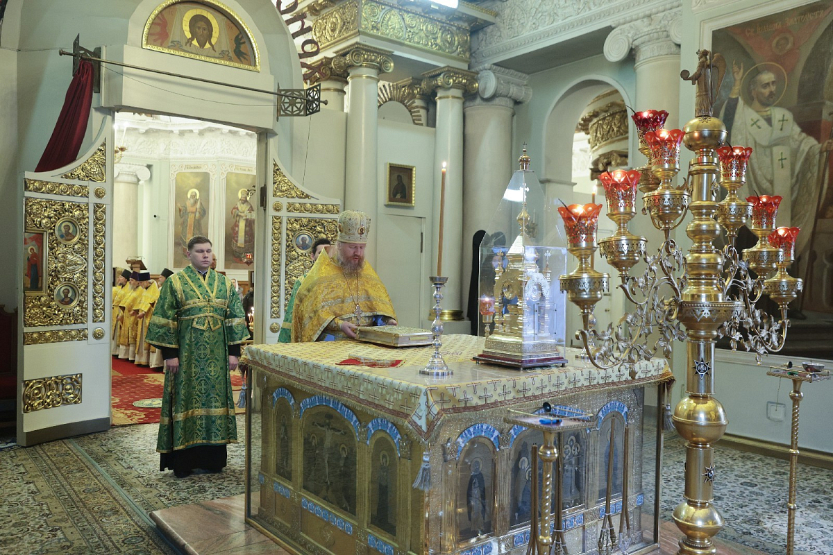 По окончании Божественной литургии архимандрит Павел (Кривоногов) передал епископу Алексию поздравление Святейшего Патриарха Московского и всея Руси Кирилла: