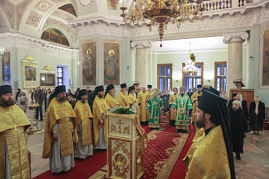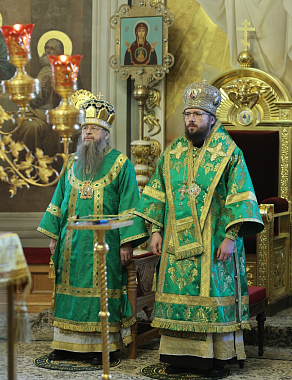 За Литургией Его Преосвященству сослужили епископ Россошанский и Острогожский Дионисий, наместник Саввино-Сторожевского ставропигиального мужского монастыря архимандрит Павел (Кривоногов), братия Даниловой обители в священном сане.