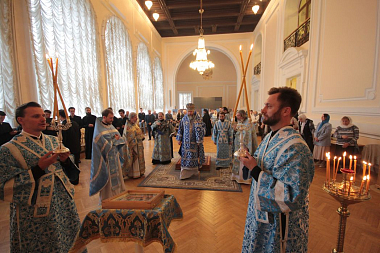 Торжества начались Божественной литургии в домовом храме во имя святителя Николая. Богослужение возглавил епископ Луховицкий Евфимий, викарий Святейшего Патриарха Московского и всея Руси, председатель Синодального миссионерского отдела.