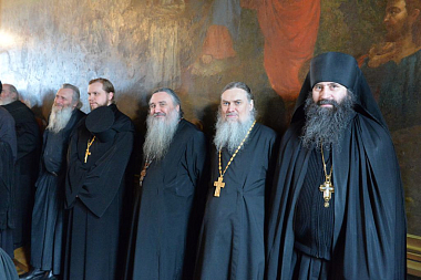 По окончании богослужения поздравление Святейшего Патриарха Московского и всея Руси Кирилла с днем тезоименитства архимандриту Венедикту передал заместитель председателя Синодального отдела по монастырям и монашеству архимандрит Стефан (Тараканов).