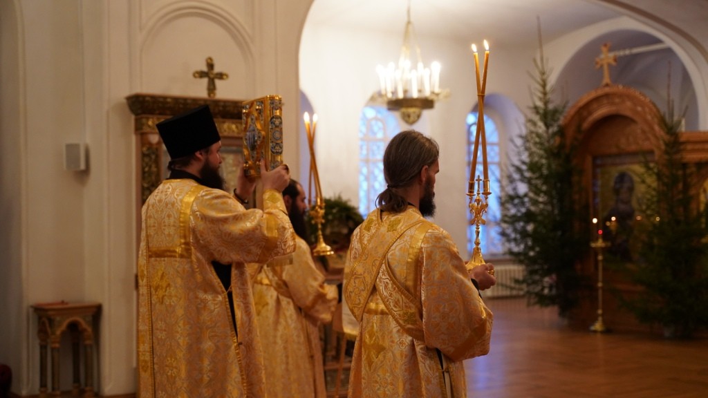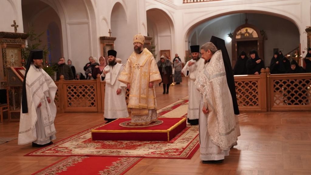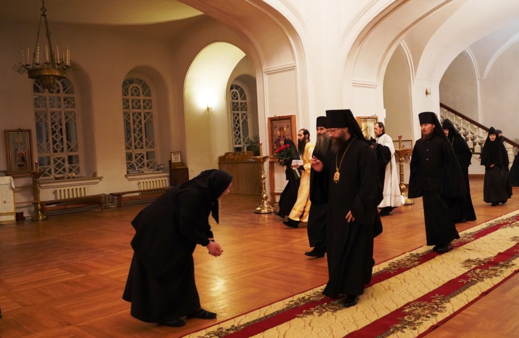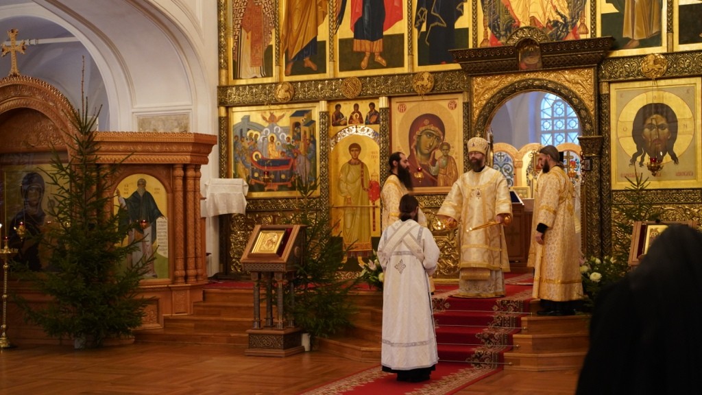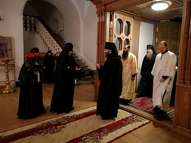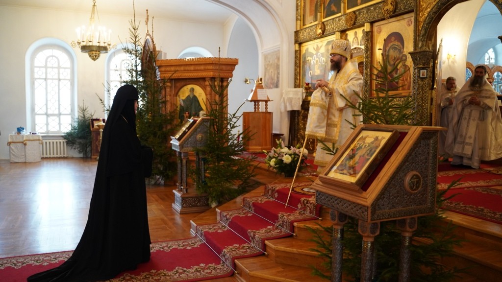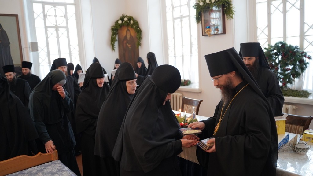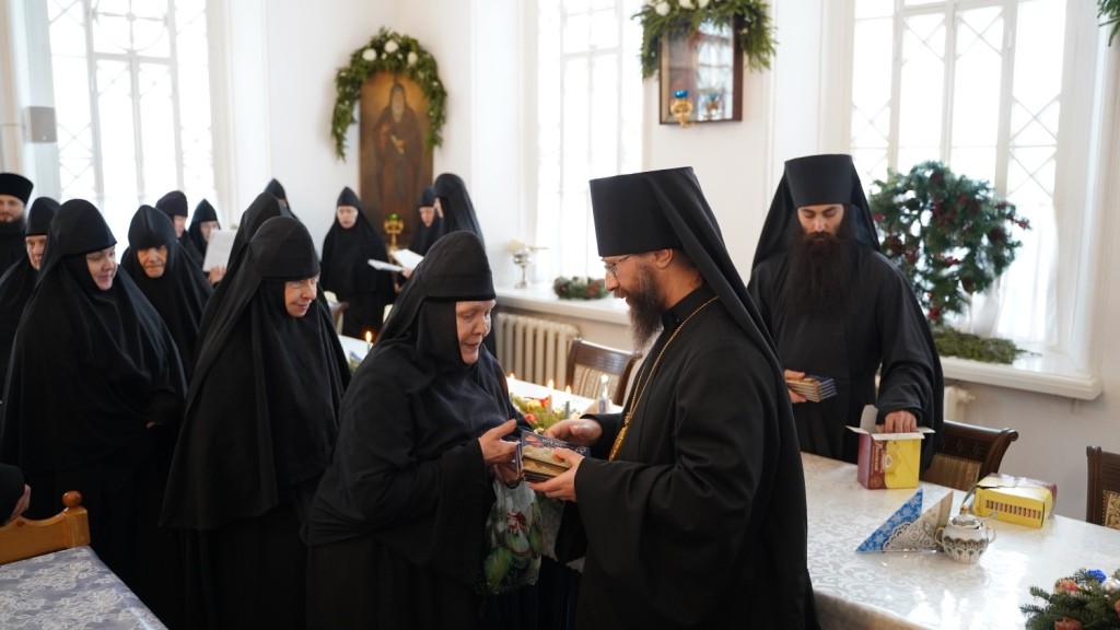 Поздравить с праздником Рождества Христова и новолетием настоятельницу монастыря игумению Сергию (Щербакову) и сестер обители, а также разделить радость совместного богослужения прибыли братия монастыря Оптина пустынь во главе с его наместником епископом Можайским Леонидом, викарием Патриарха Московского и всея Руси.