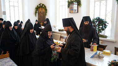 В завершение Его Преосвященство от себя лично и всей братии монастыря Оптина пустынь поздравил игумению Сергию и насельниц монастыря с праздником, пожелав им не только самим сподобиться ощутить духовную радость торжества, но и щедро поделиться ею с окружающими.