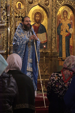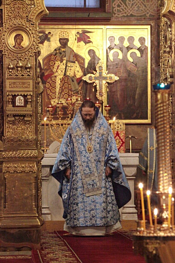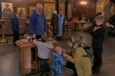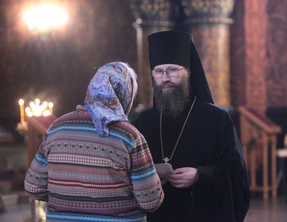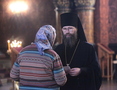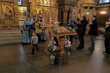По окончании Литургии епископ Леонид рассказал в своей проповеди об истории образа Божией Матери «Знамение», а также призвал обратить внимание на слова Священного Писания: «Сыне, даждь ми твое сердце» (Притч. 23:26).