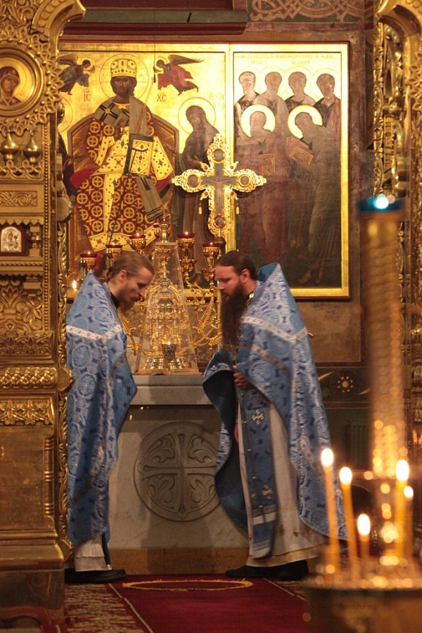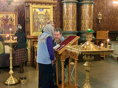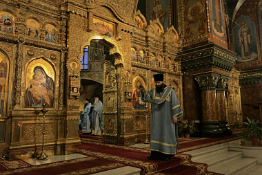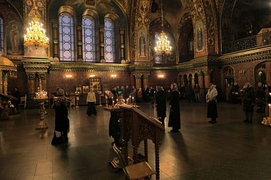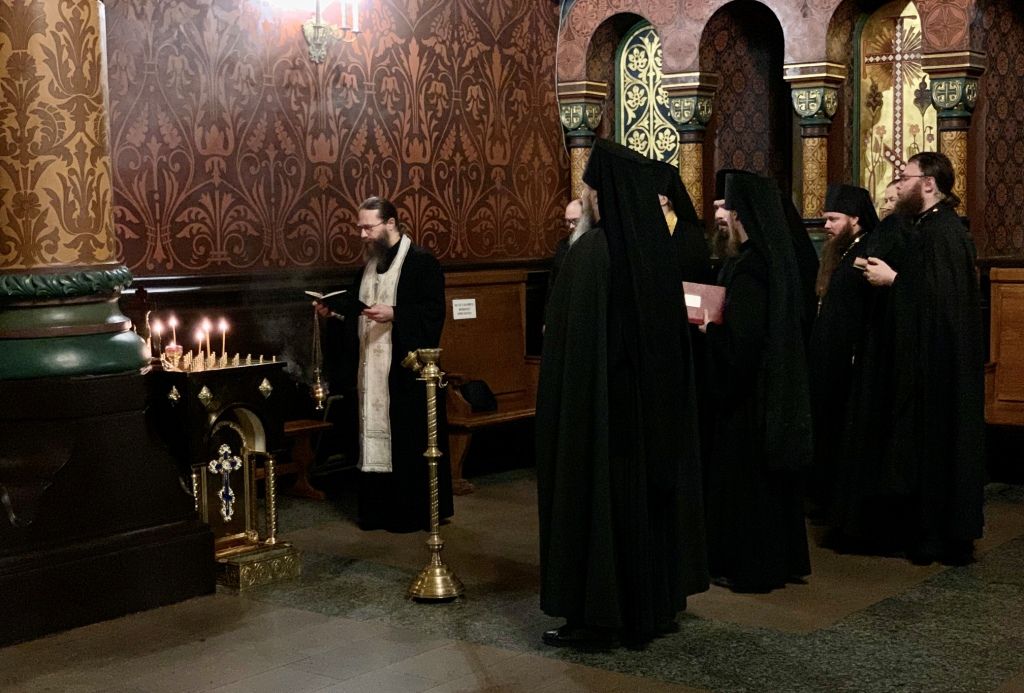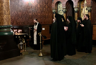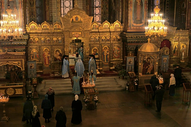 Песнопения исполнил мужской хор под управлением Александра Семенова.