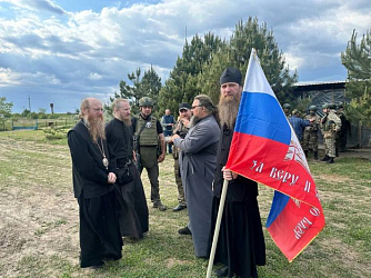Посмотрев на разрушения завода Азовсталь, место героического подвига и доблести наших солдат, отец наместник с братией поехали в обратный путь, а бойцы проводили их до КПП на границе Ростовской области.