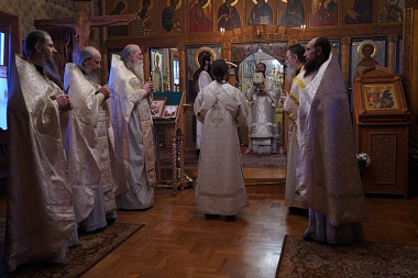 В этот день в скитском храме была отслужена праздничная Божественная литургия, которую возглавил наместник Введенского ставропигиального мужского монастыря Оптина пустынь епископ Можайский Леонид в сослужении скитской братии в священном сане.